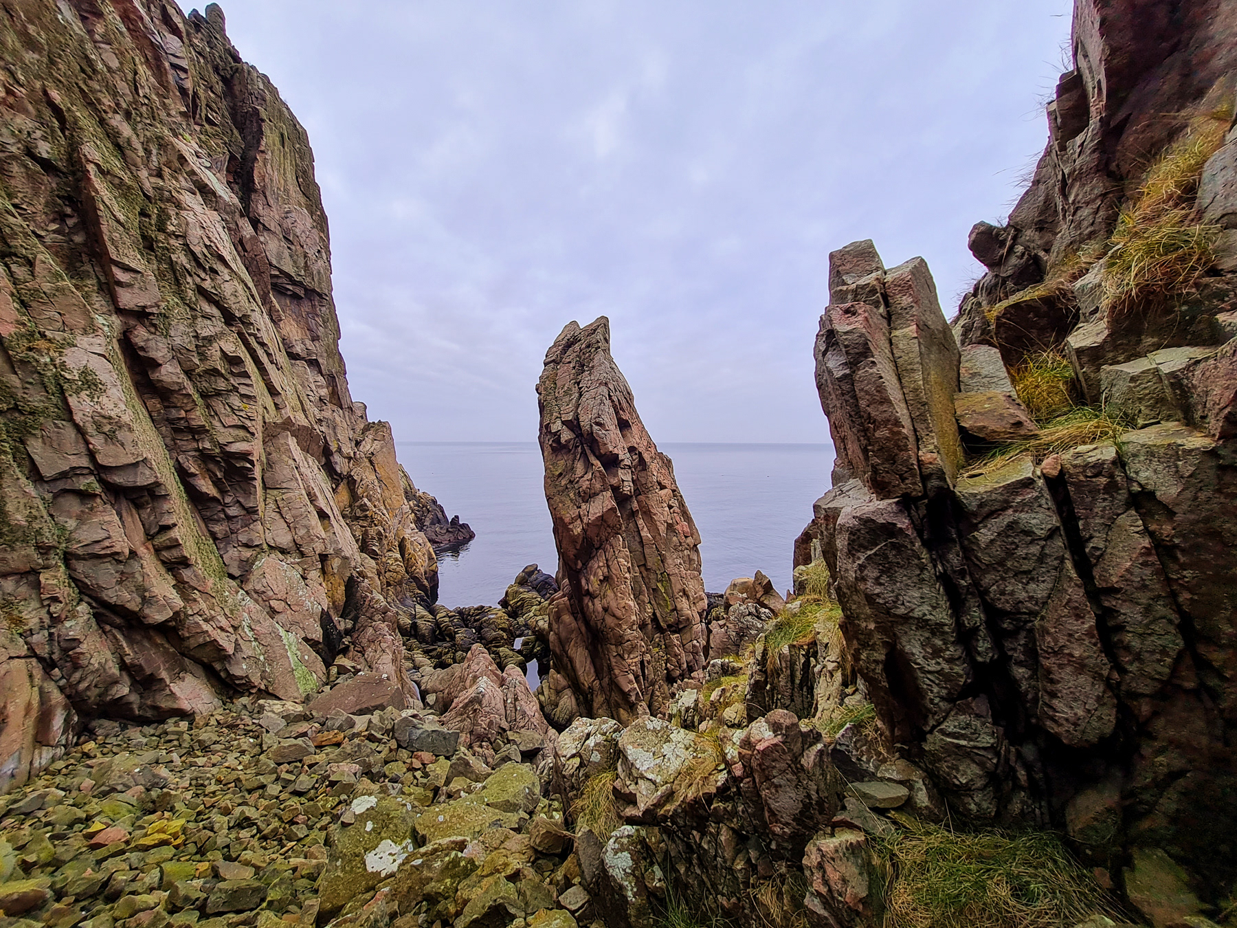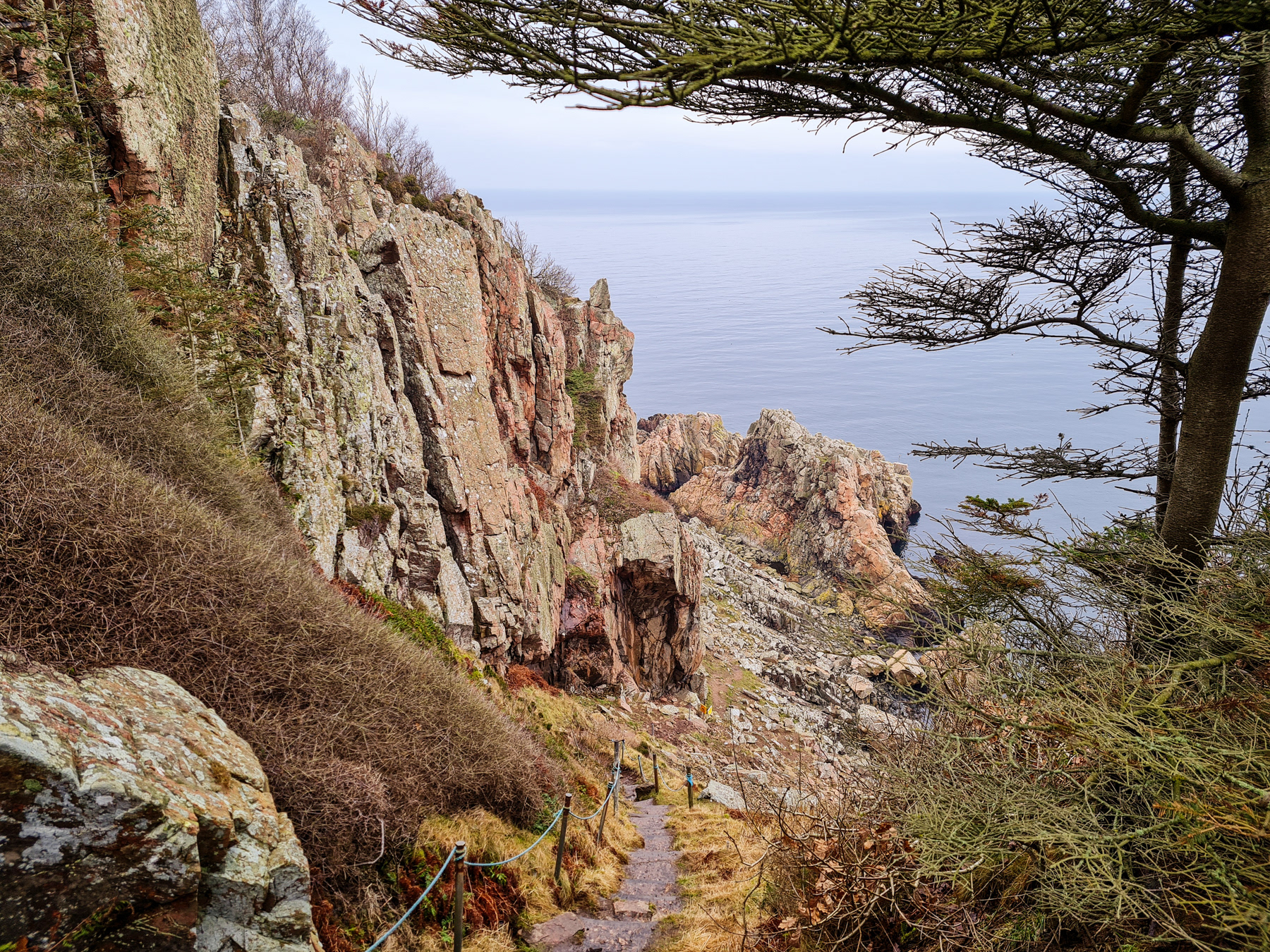 Hiking the Kullaberg trail one reaches the more dramatic parts of the northern coast roughly halfway when coming from the east.