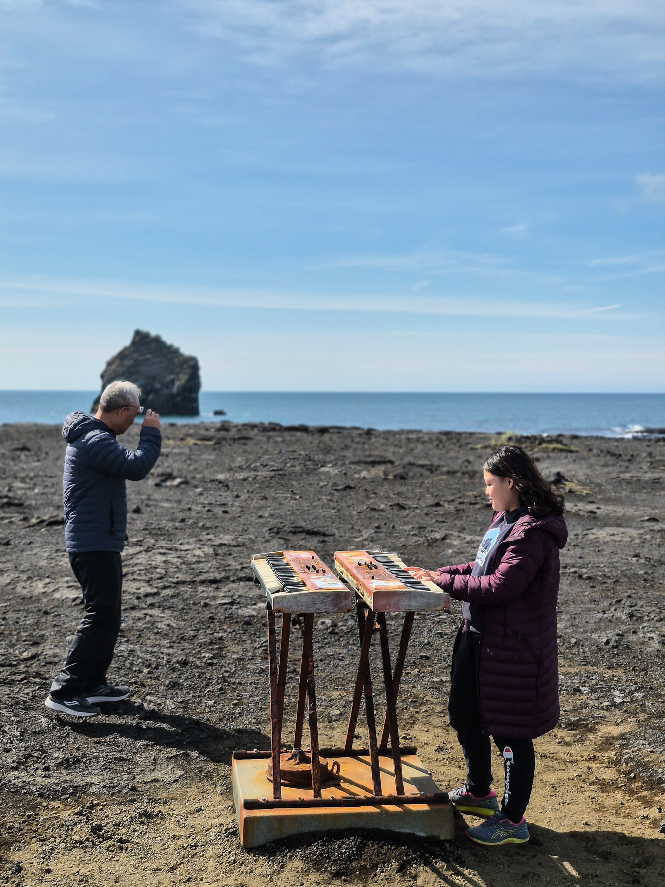 Arguably one of the funniest films of the past years is Eurovision Song Context—The Story of Fire Saga. Will Ferrel (co-writer of the script), Rachel McAdams, Pierce Brosnan, and others are the stars of this 2020 production. It might not have the highest ranking in the Internet Movie Database, but for Eurovision fans, and those ready for a good love, it is very much worth seeing. Also for fans of Iceland, as many of the scenes are shot in the country. Do visit Húsavík (click on button below) for instance. But one of the more legendary scenes (watch on YouTube), introducing main protagonists Lars (aka Volcano Man) and Sigrit shot at the end of the Reykjanes Peninsula. For the fans, the keyboards of (or similar to the ones used in) the scene are still there—ready to have the famous scene reenacted.