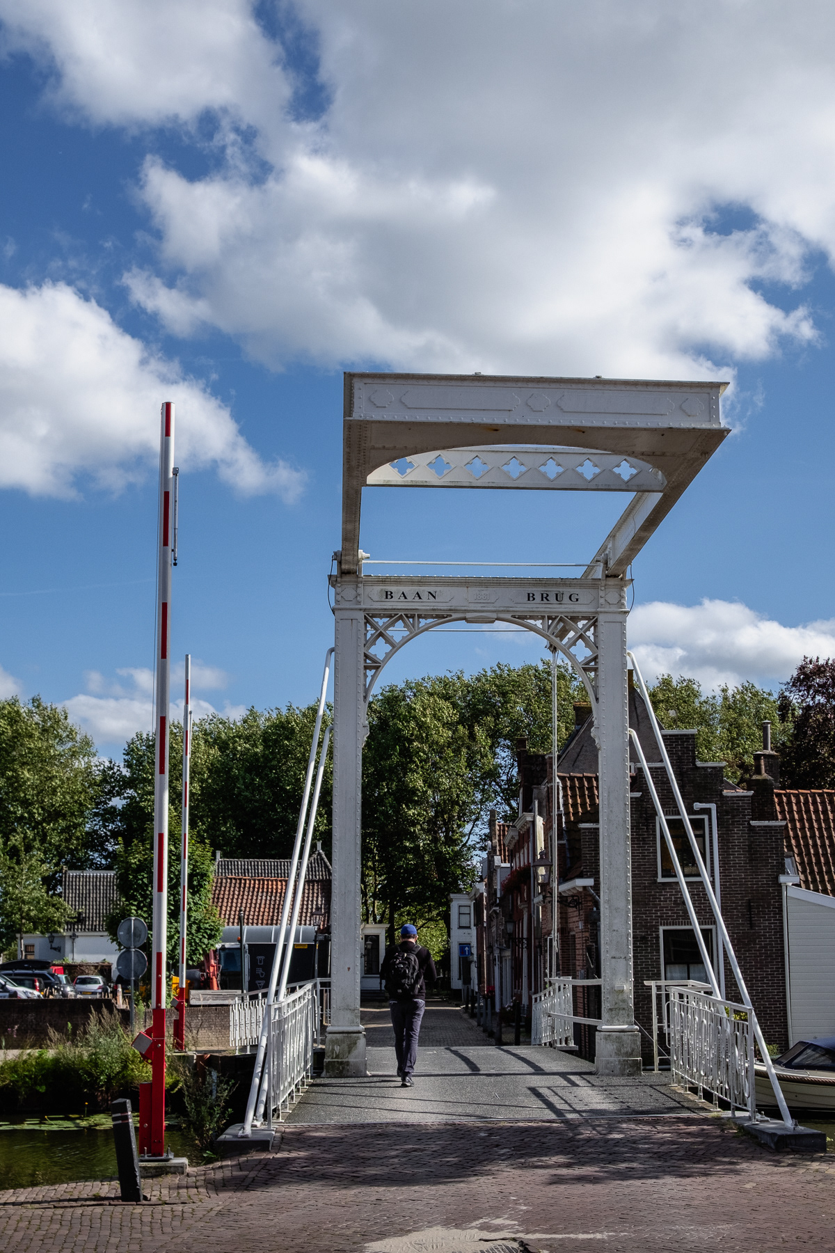 A central canal and bridge in Edam, August 2023.